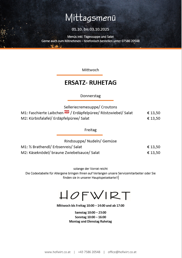 Menüplan KW 40/2025