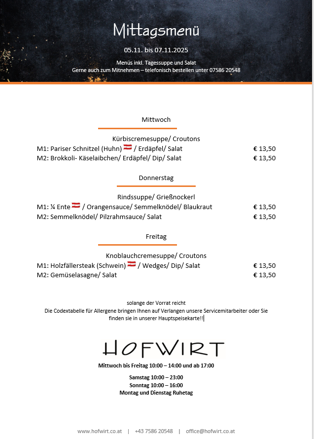© 2025 Gasthaus Hofwirt, Pettenbach, OÖ. Alle Rechte vorbehalten. Shared by